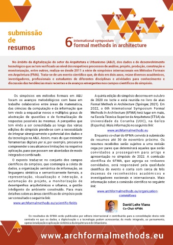 em Arquitetura (FMA). Trata-se de um evento científico que, de dois em dois anos, reúne diversos académicos,