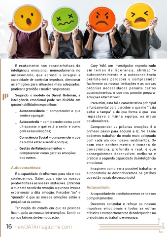 inteligência emocional, nomeadamente no e m t e m a s d e l i d e r a n ç a , a fi r m a : “o