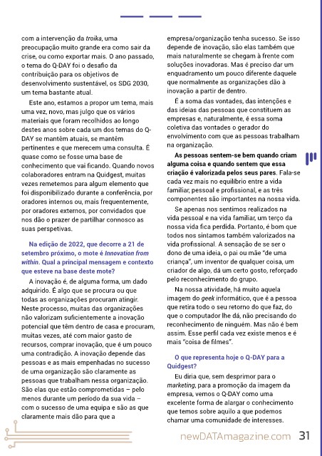 o tema do Q-DAY foi o desafio da soluções inovadoras. Mas é preciso dar um