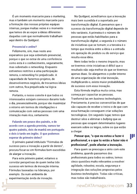 aqui dentro da Quidgest. transformação digital; a segunda é o número