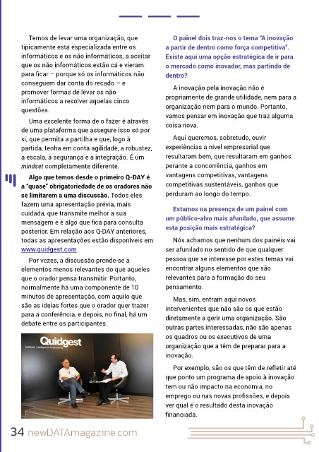 Temos de levar uma organização, que O painel dois traz-nos o tema “A inovação