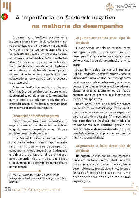 estimular ações de melhoria. O feedback pode Deste modo, e segundo o artigo, pessoas
