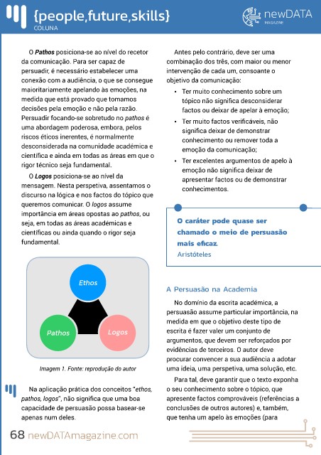 {people,future,skills} newDATA MAGAZINE COLUNA O caráter pode quase ser chamado o meio de persuasão mais eficaz. Aristóteles 68 newDATAmagazine.com