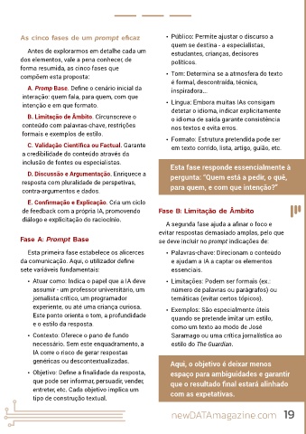 As cinco fases de um prompt eficaz Ÿ Público: Permite ajustar o discurso a